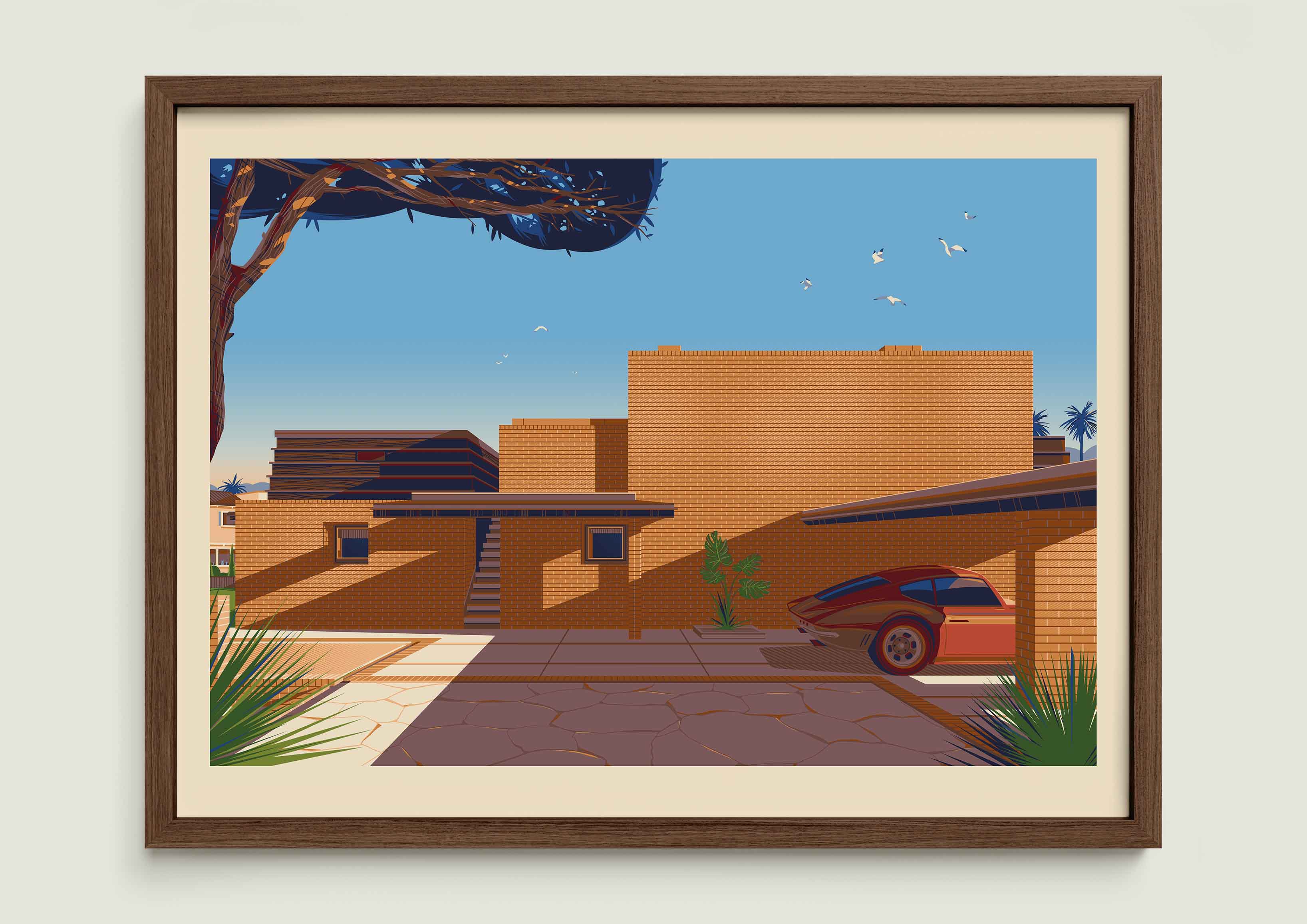 This was the very first print I ever created for my Los Angeles series. Looking back, my style has changed a lot since then, and it’s fascinating to see how far I’ve come.