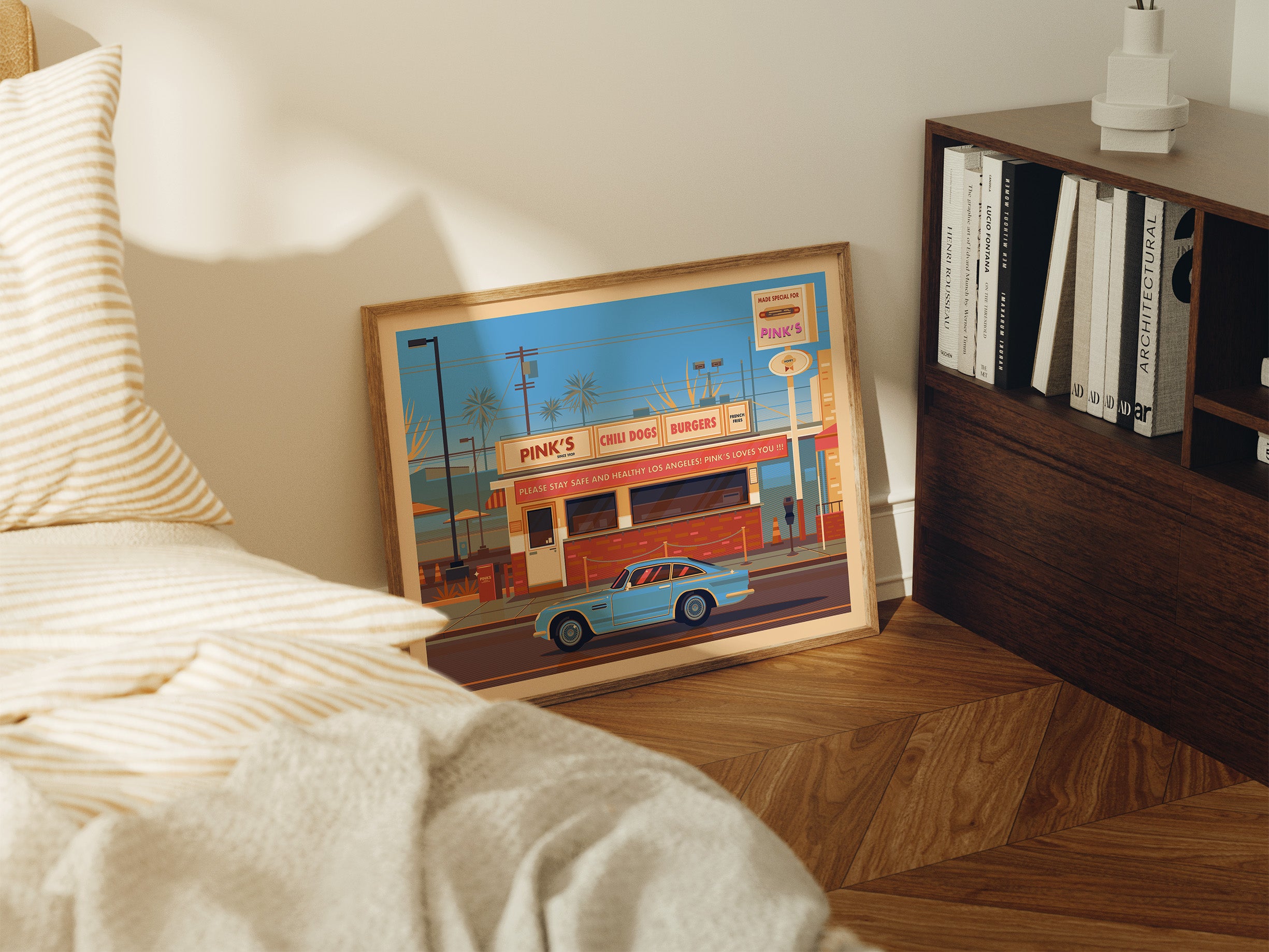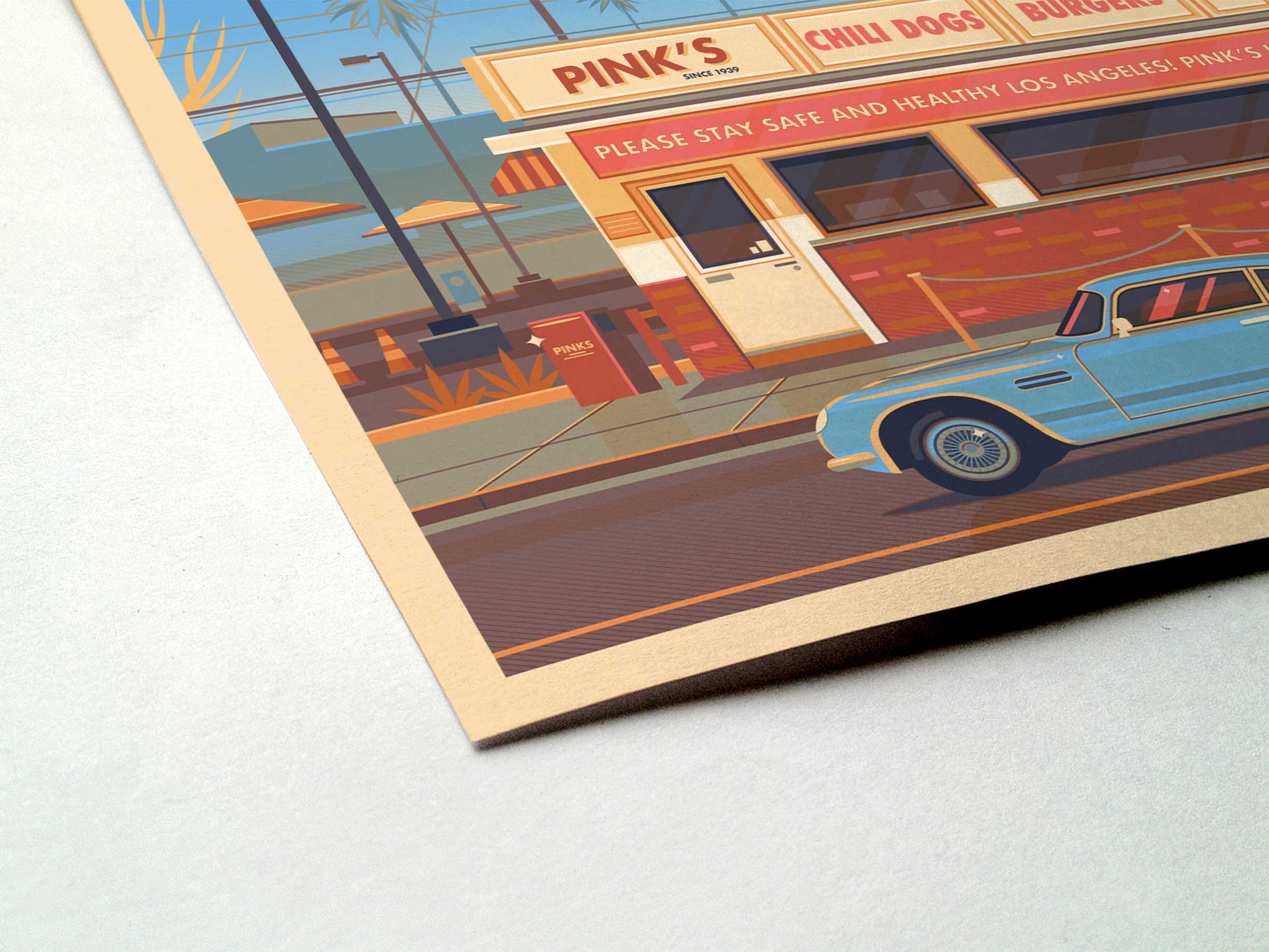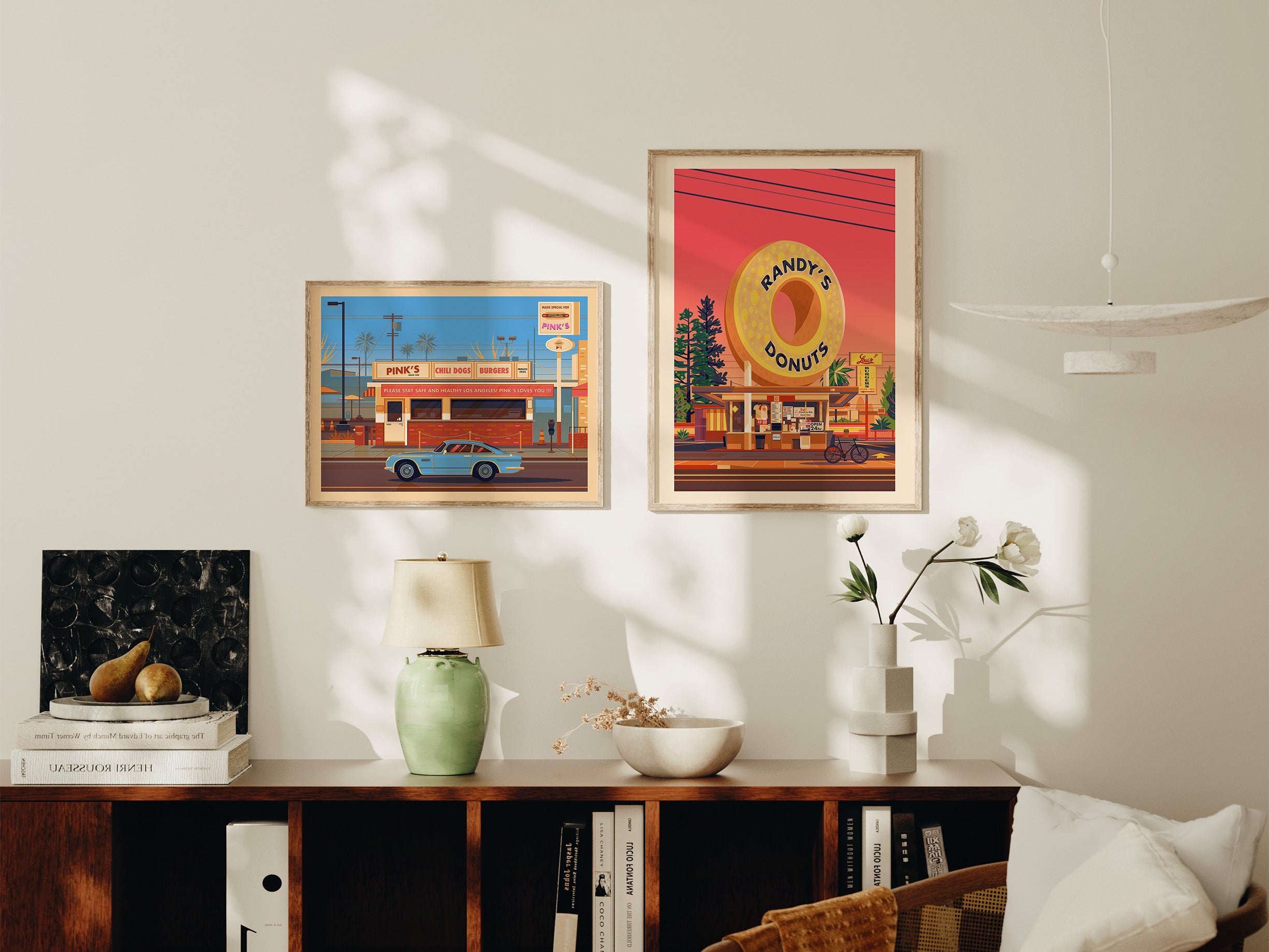 No, every piece is created digitally by hand. I spend a long time researching Los Angeles architecture and history, then carefully draw each illustration in Photoshop. It’s a process rooted in passion, not automation.