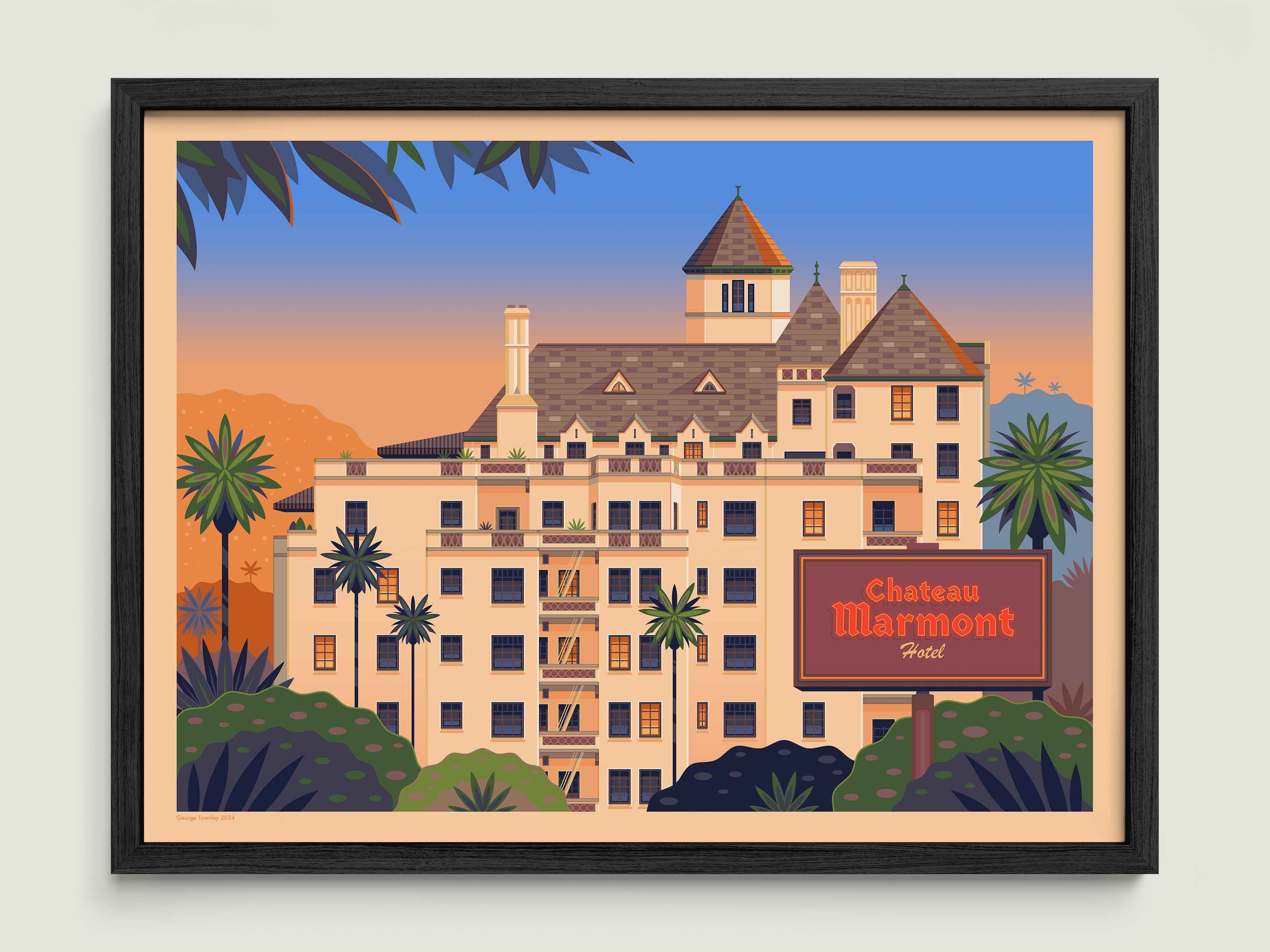 Each print begins with research and a hand-drawn sketch. I then do a quick colour study to capture the mood, before illustrating the piece in Photoshop, layer by layer, refining every detail as carefully as possible.