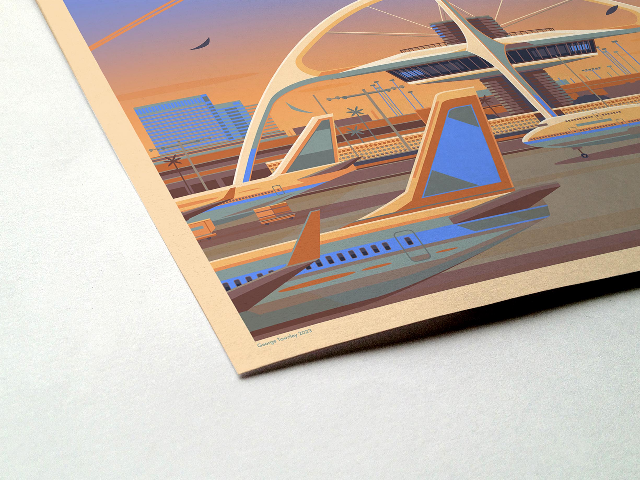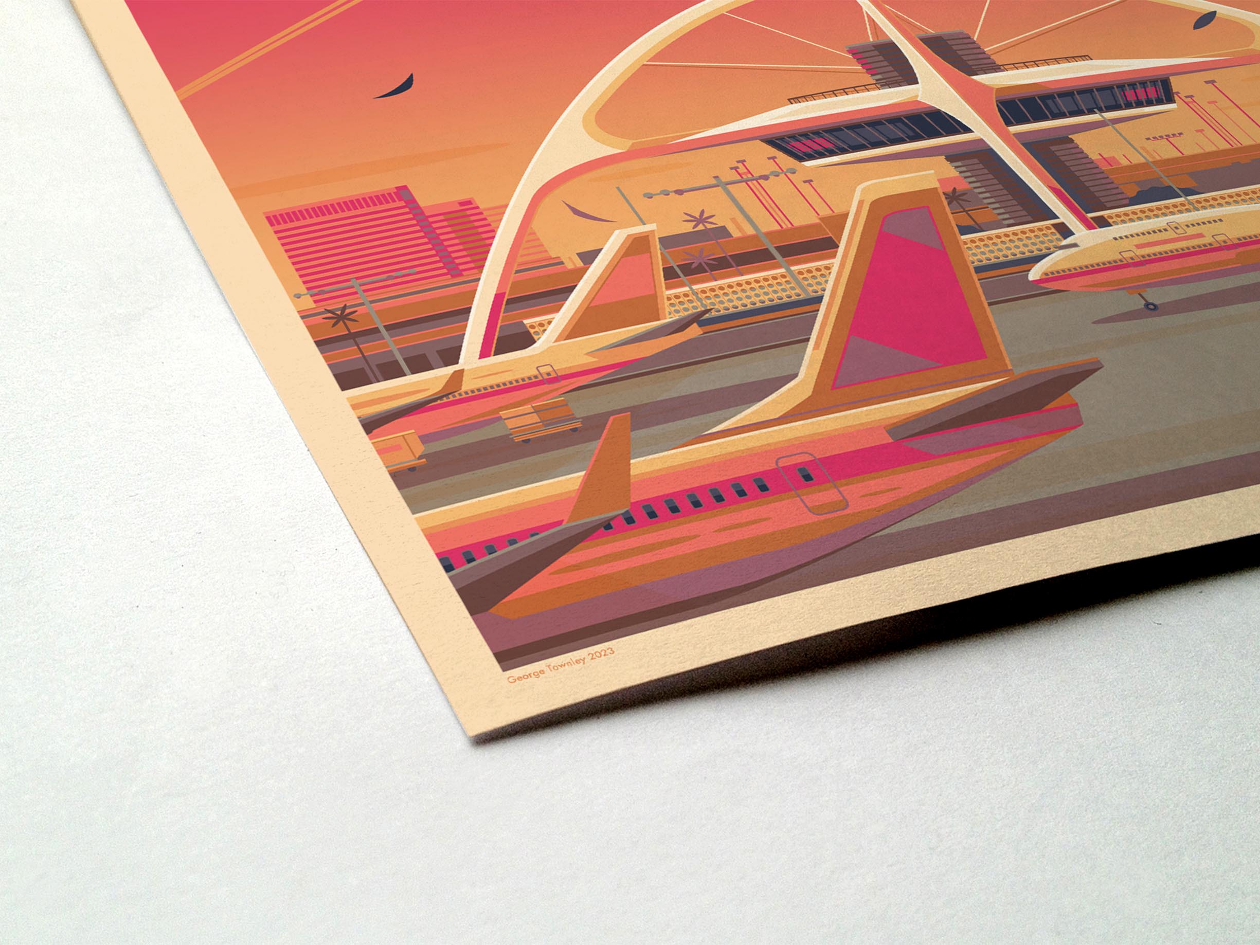 Each print begins with research and a hand-drawn sketch. I then do a quick colour study to capture the mood, before illustrating the piece in Photoshop, layer by layer, refining every detail as carefully as possible.