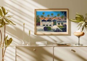 This print was inspired by the Park Imperial South buildings in Palm Springs and was one of the very first pieces in what’s now become a long-running series. I made it long before I’d ever visited Palm Springs in person, the obsession was already there.