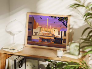 I’ve always loved the facade of this building, and even though I’ve only seen it in person once, it’s stuck with me over the years. It’s a little more under-the-radar than some of my other theatre prints, but I like to put it on people’s radar whenever possible, and I hope this print does exactly that.