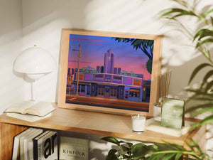 No, every piece is created digitally by hand. I spend a long time researching Los Angeles architecture and history, then carefully draw each illustration in Photoshop. It’s a process rooted in passion, not automation.
