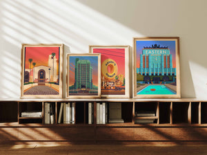 George Townley is a London-based illustrator known for nostalgic depictions of iconic architecture and landmarks. His work has been exhibited in six solo shows across Los Angeles, and he has curated an LA-themed group exhibition featuring emerging artists. His illustrations have also been published in a dedicated art book.