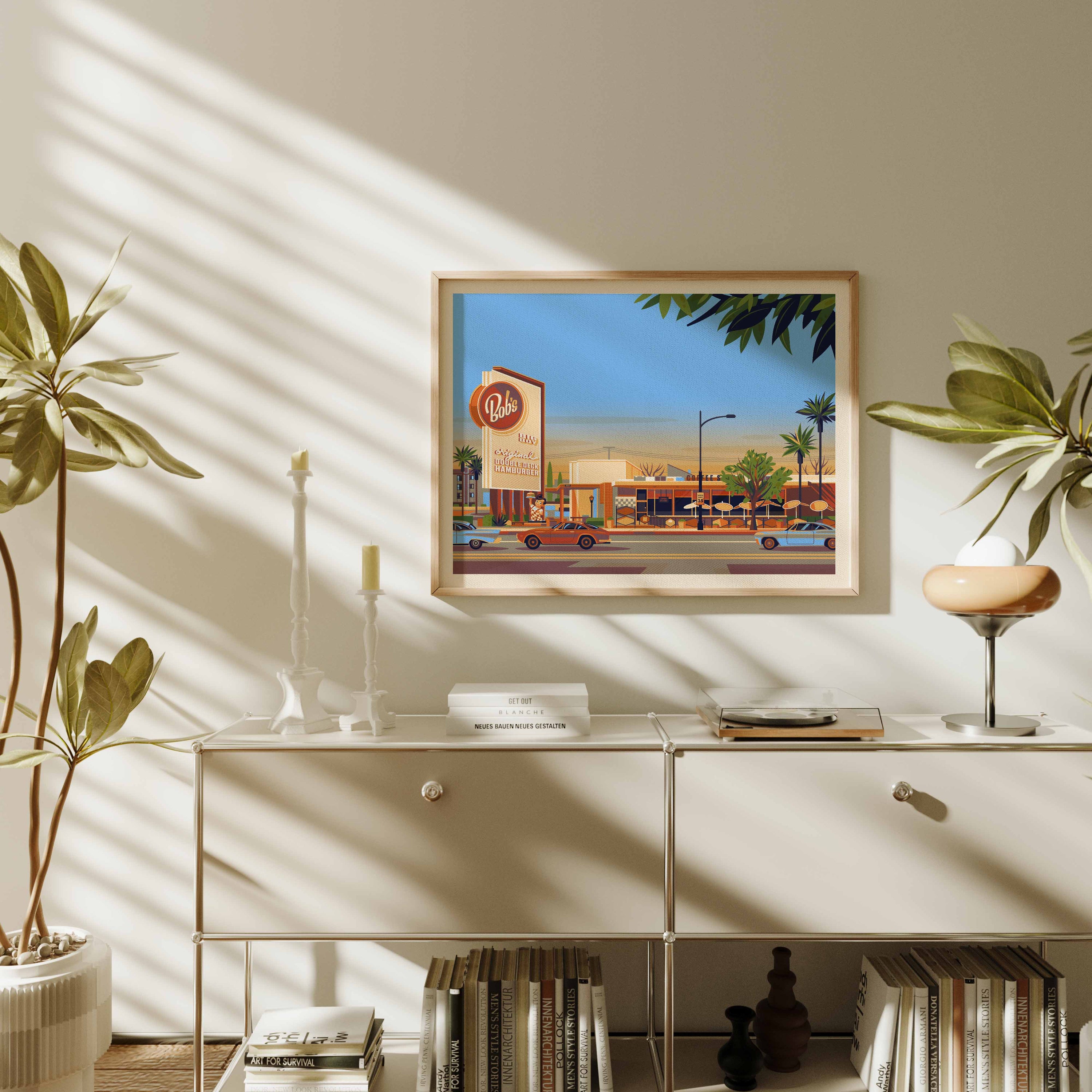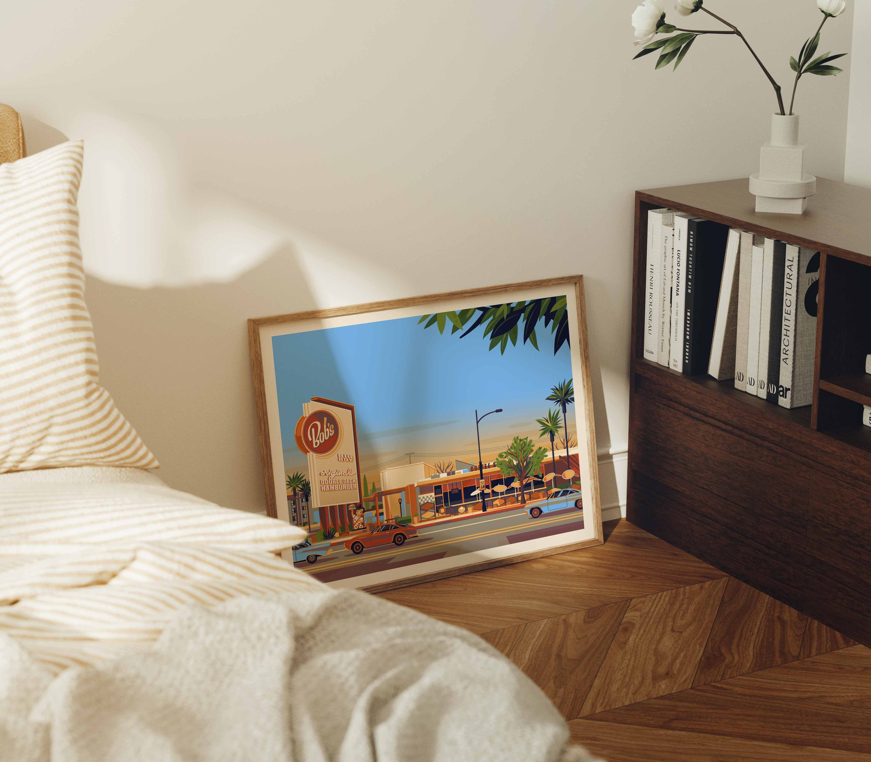 No, every piece is created digitally by hand. I spend hours researching Los Angeles architecture and history, then carefully draw each illustration in Photoshop. It’s a process rooted in passion, not automation.