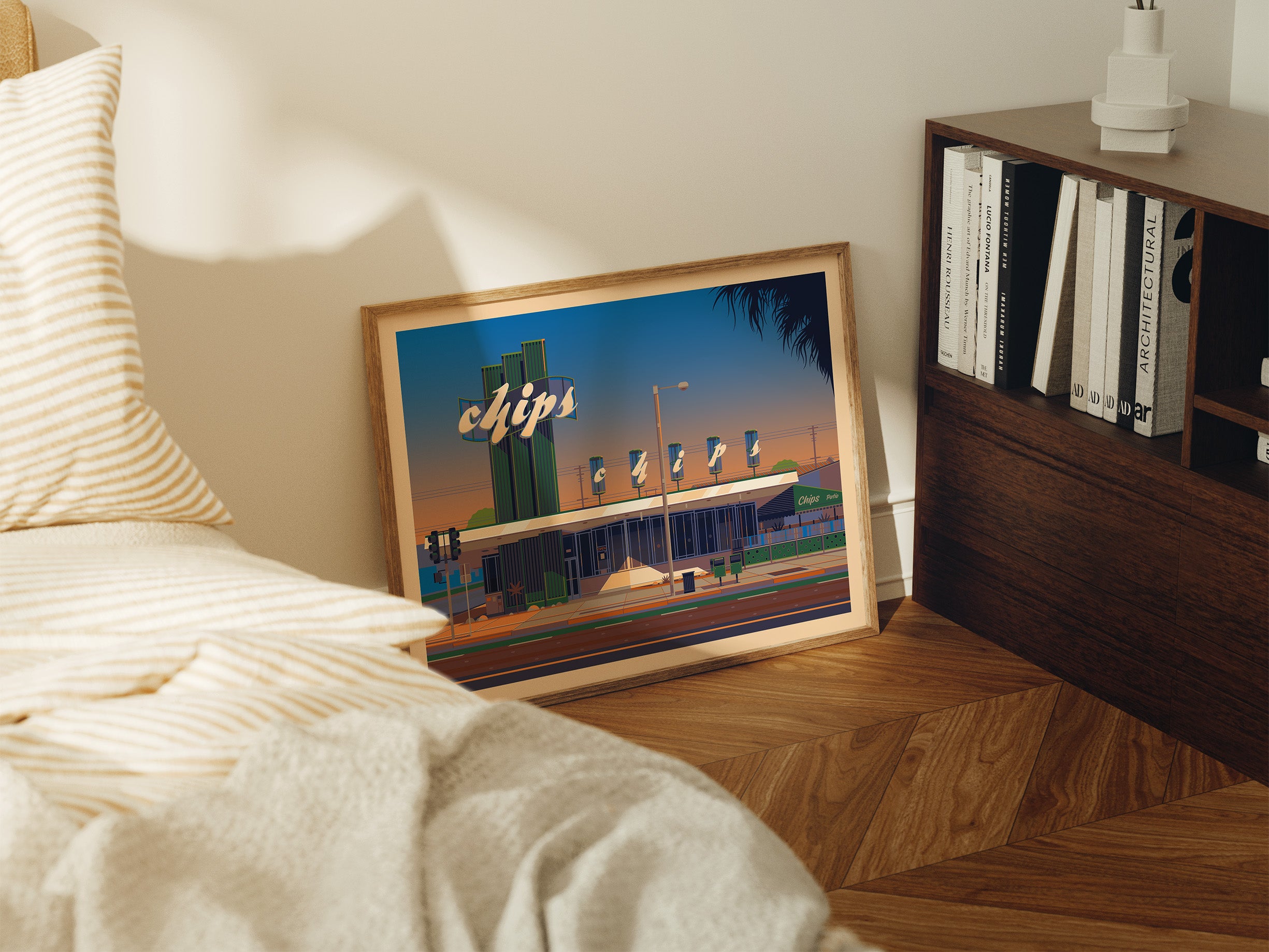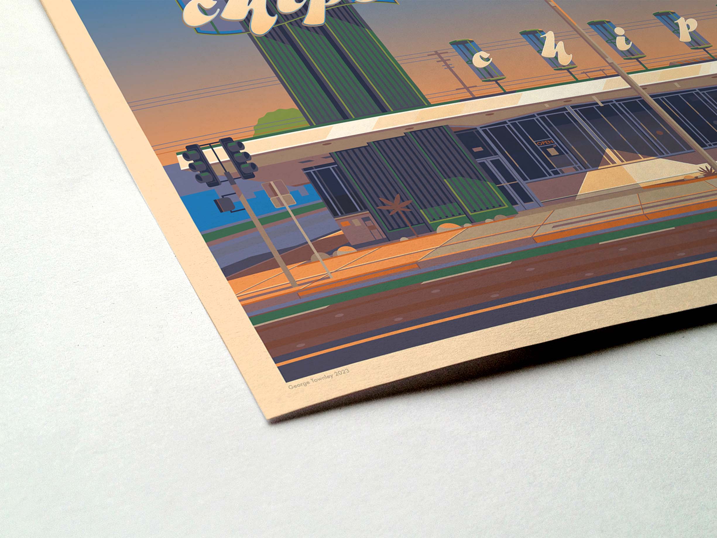 No, every piece is created digitally by hand. I spend a long time researching Los Angeles architecture and history, then carefully draw each illustration in Photoshop. It’s a process rooted in passion, not automation.