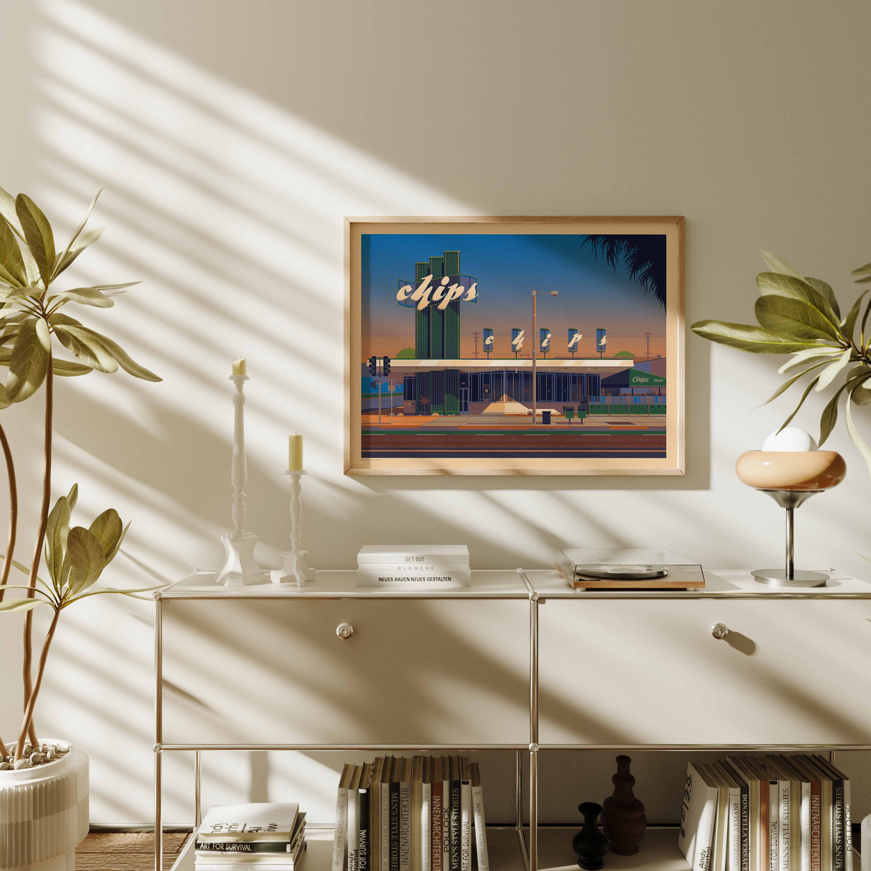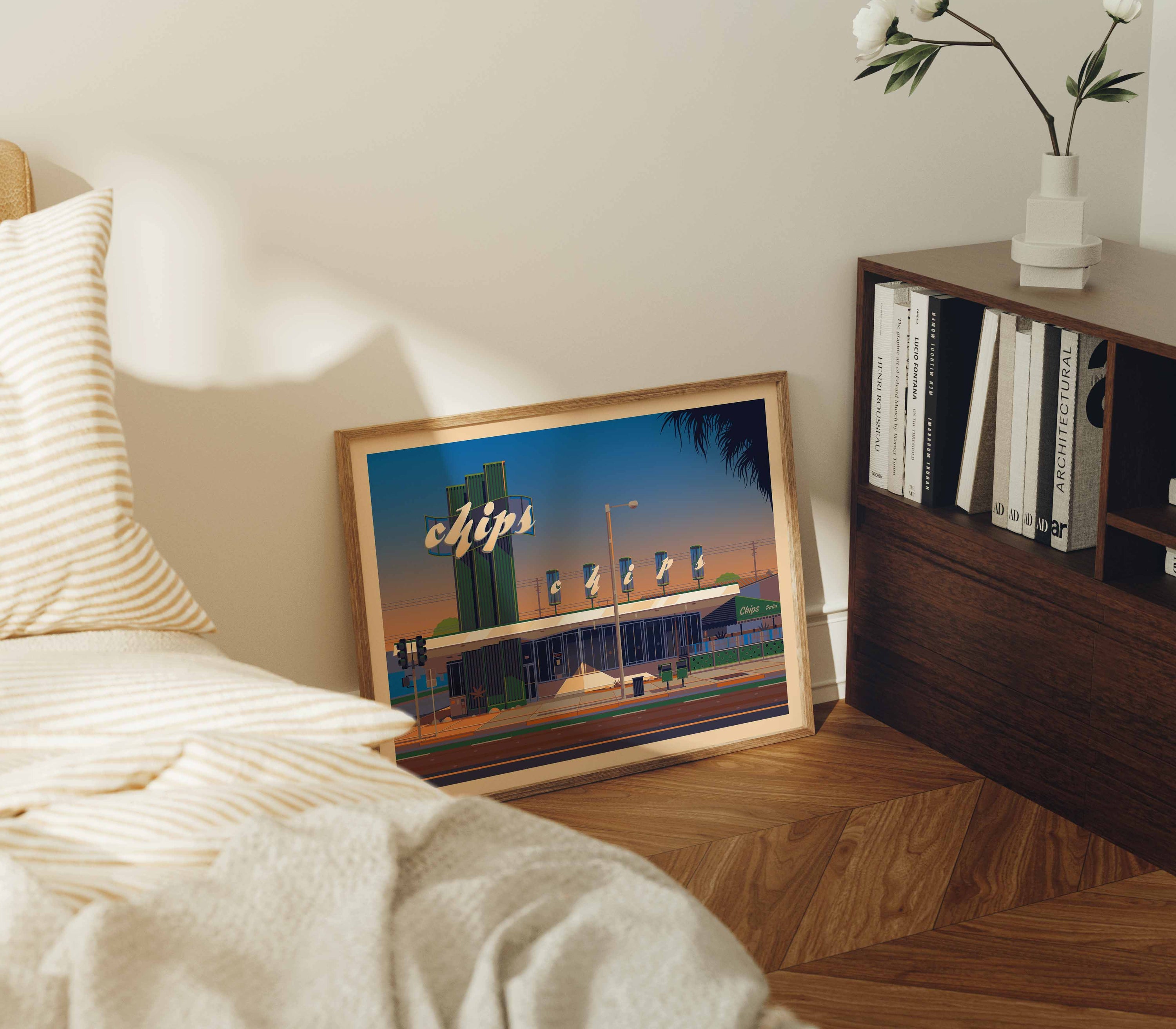 My tribute to Chips Restaurant, a restaurant in Los Angeles. This artwork captures the city’s unique blend of architecture and nostalgia in a fine art print.