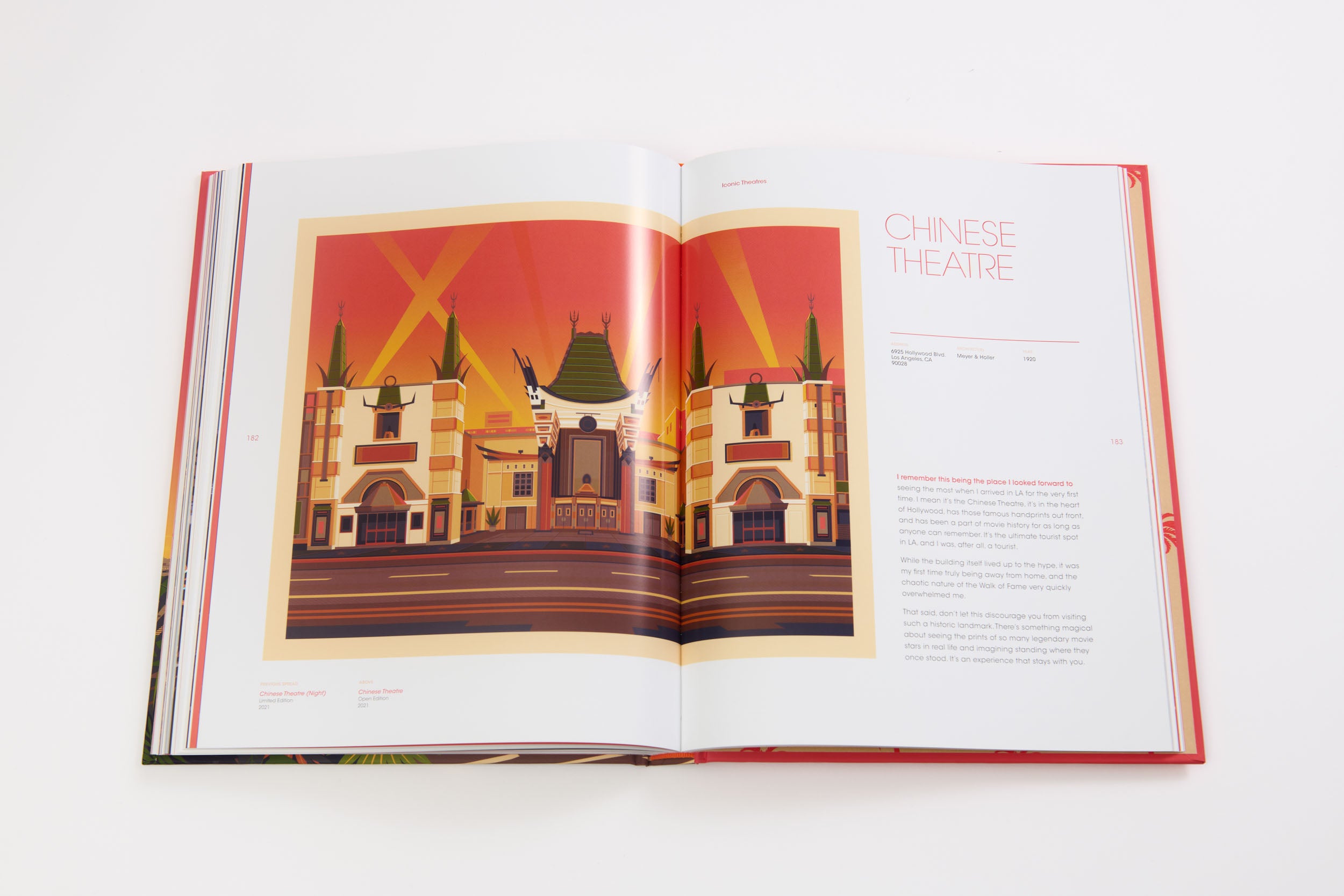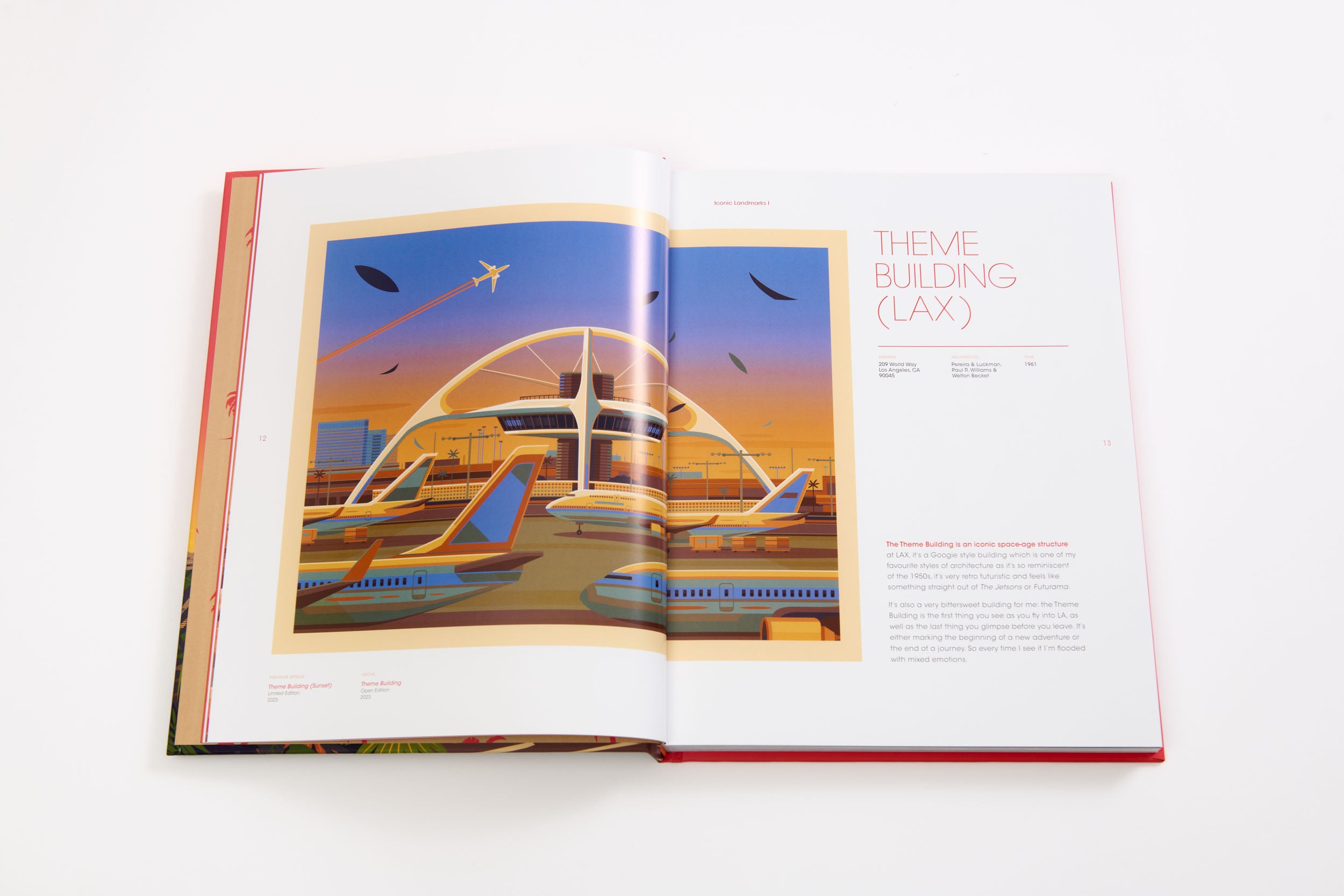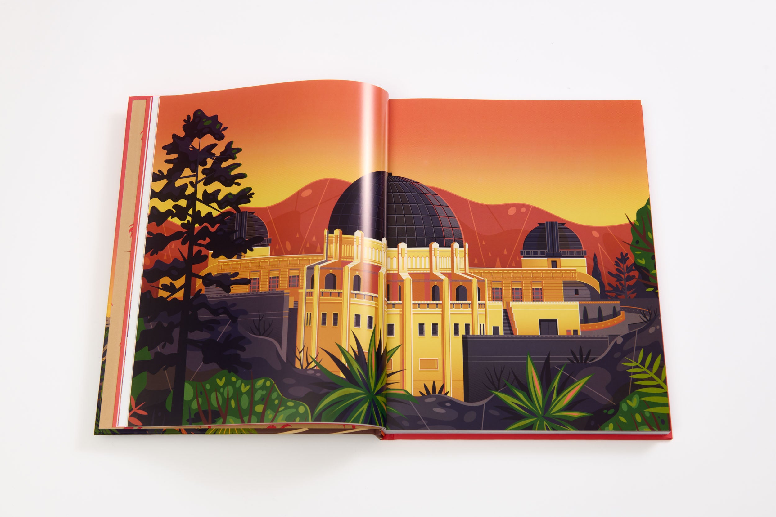 Featuring over 100 original illustrations by London-based artist George Townley, it captures the glow of Southern California’s landmarks, from Griffith Observatory to the Hollywood Bowl.