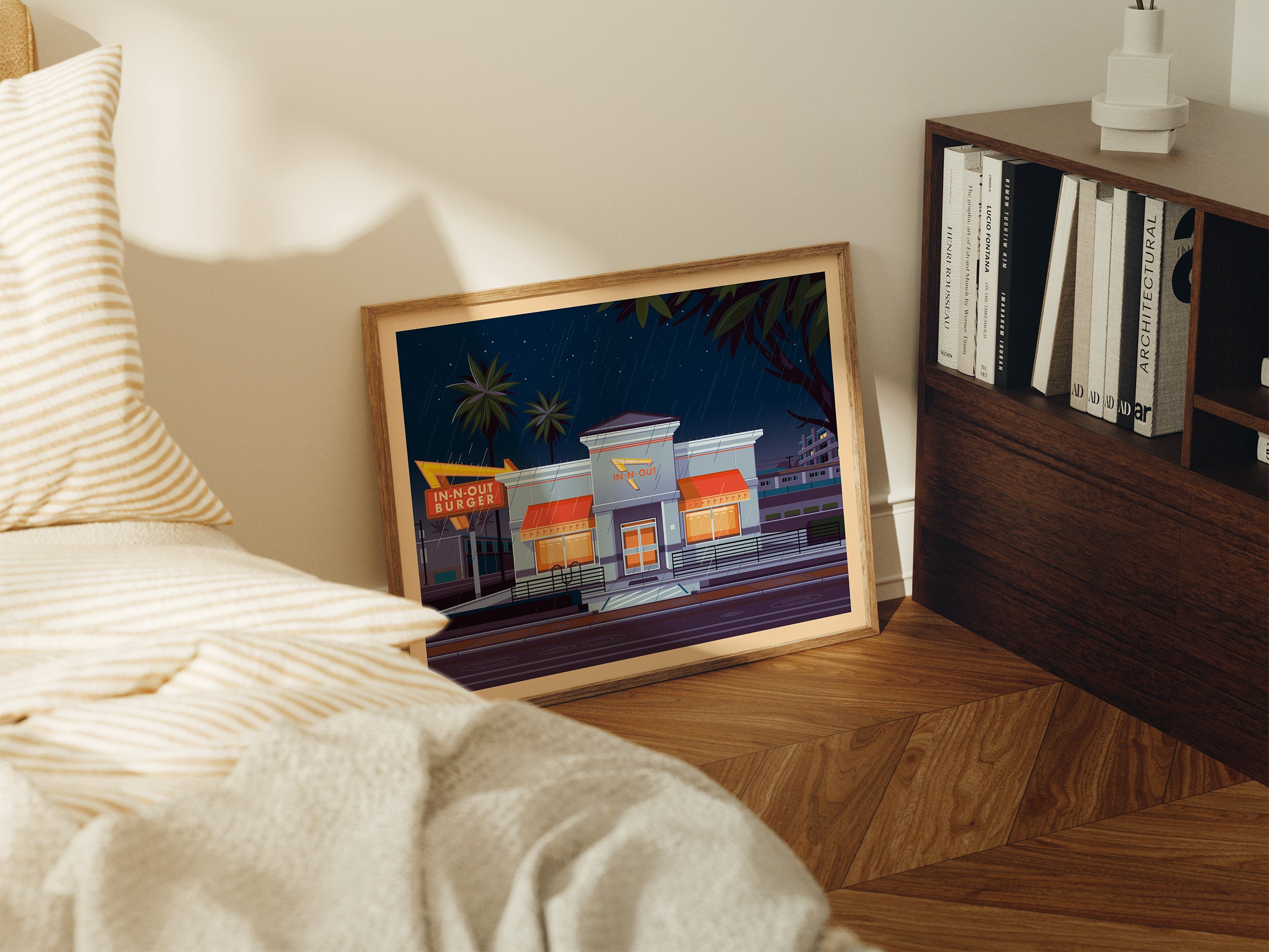 No, every piece is created digitally by hand. I spend a long time researching Los Angeles architecture and history, then carefully draw each illustration in Photoshop. It’s a process rooted in passion, not automation.