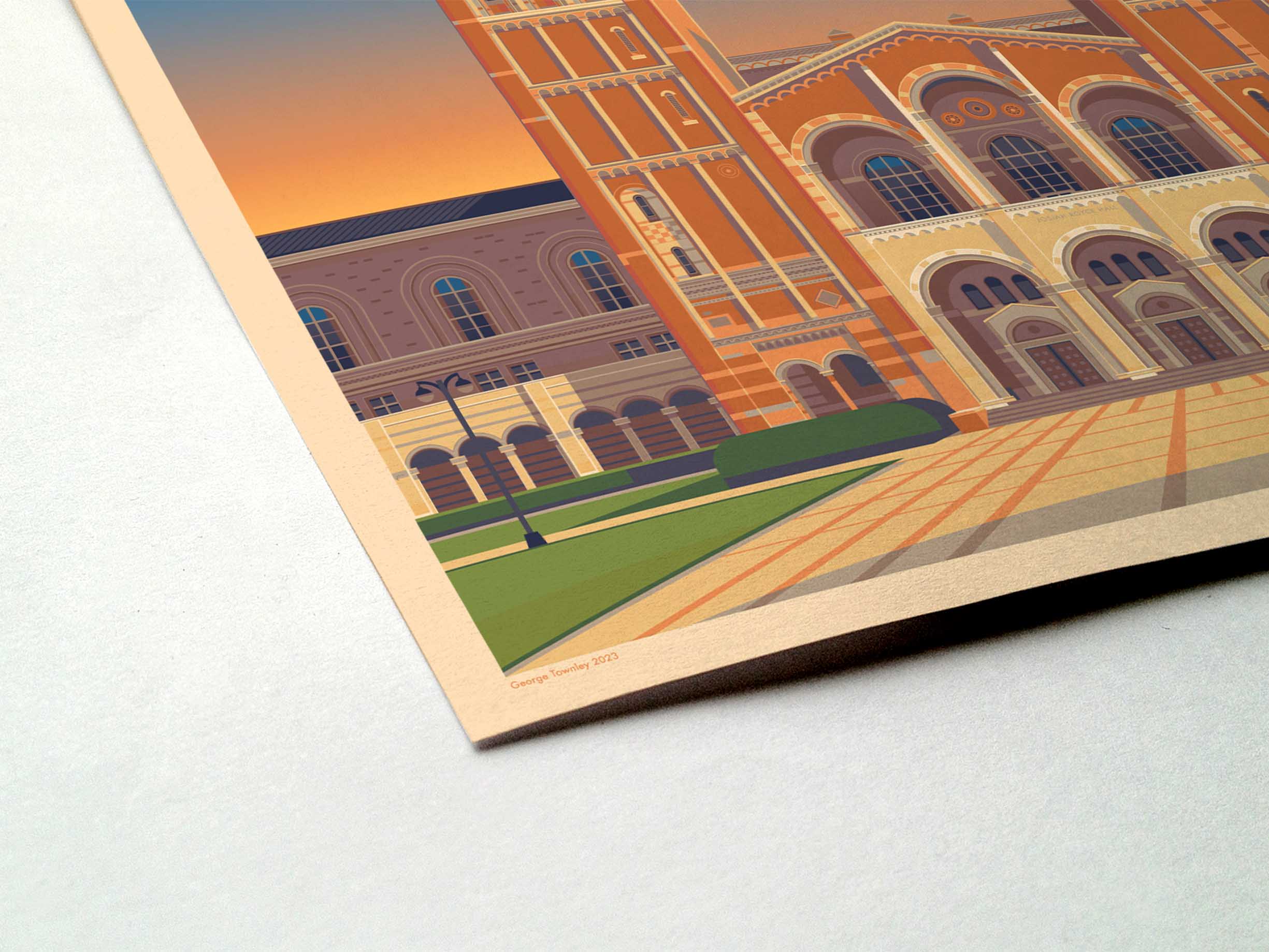 I drew this print of Royce Hall after the overwhelming reception to my In-N-Out Westwood piece. I wanted to create more prints that would resonate with people connected to UCLA, knowing how many fond memories they must have from those days.