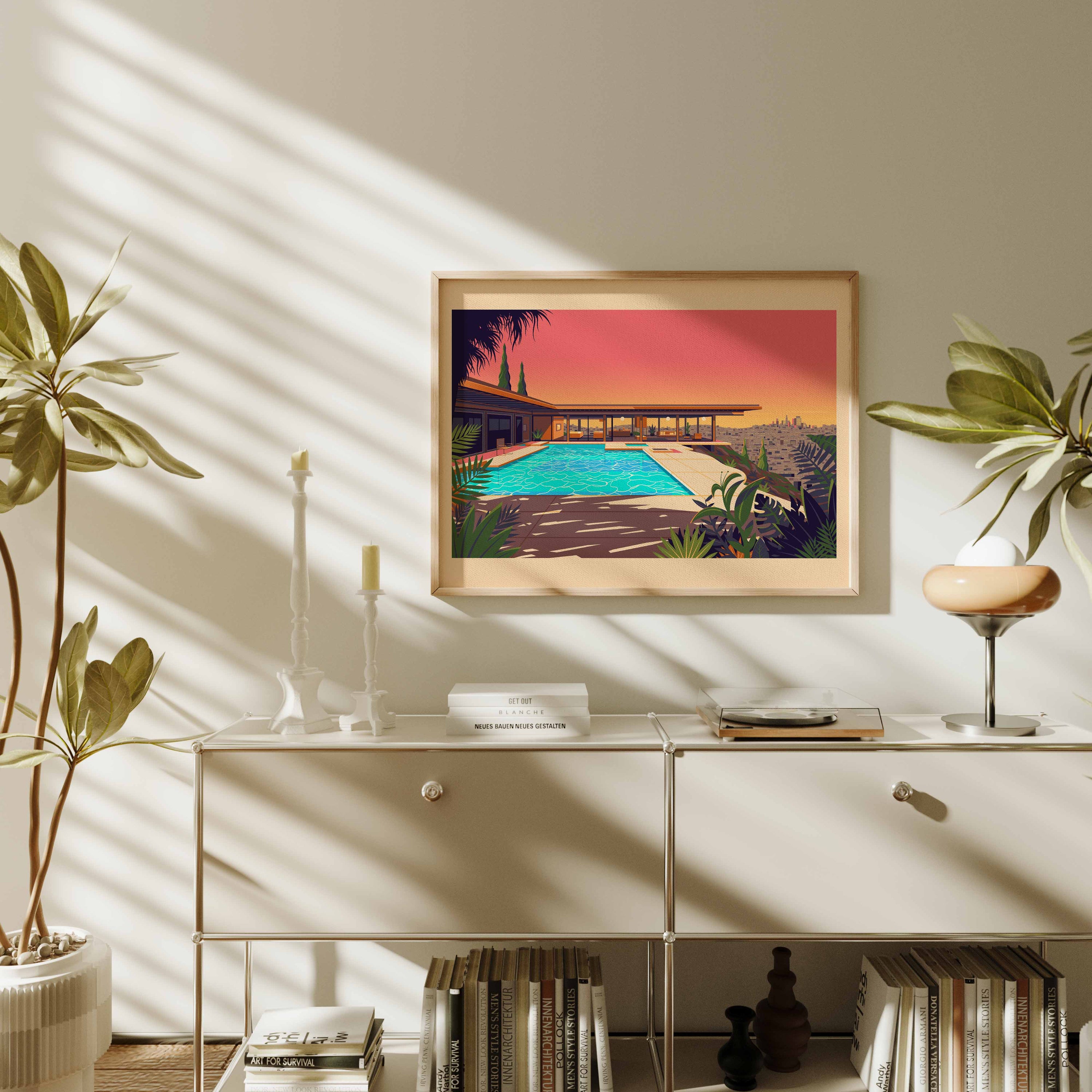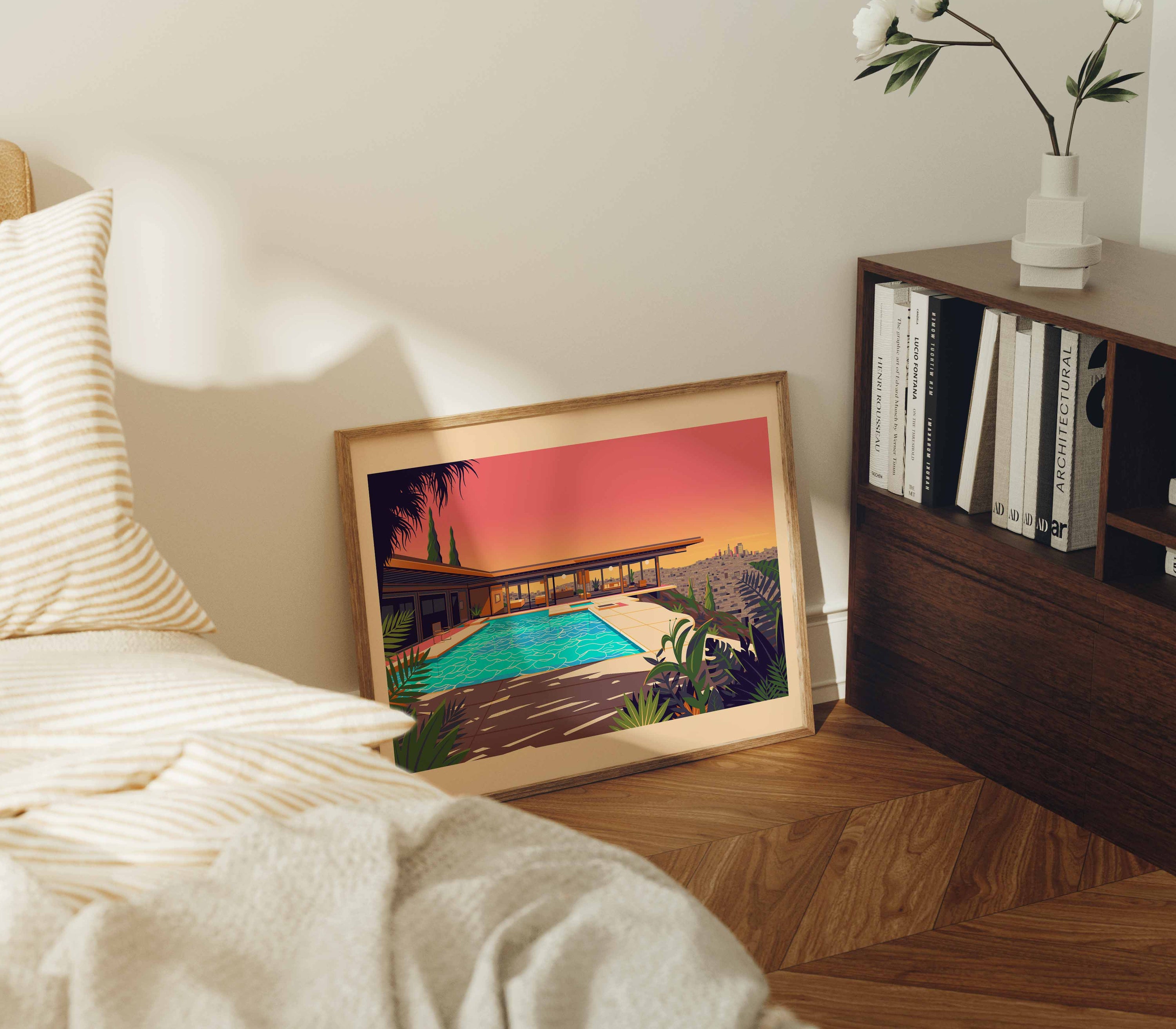 This was the second print I created in this long running series, and I credit it as the one that truly started getting people’s attention. I originally illustrated the Stahl House as a way to escape my own dreary surroundings, and I think that's why so many people are drawn to it too. It's not just a print to hang on the wall, but a little escape to somewhere warmer and full of possibilities.